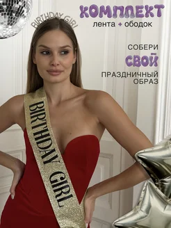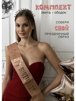 Праздничный набор ободок на голову с лентой Happy Birthday