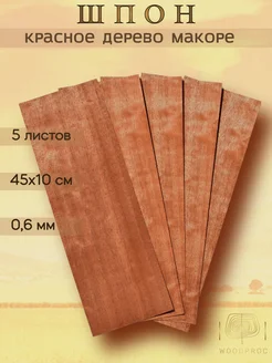 Шпон красного дерева макоре 5 листов 45х10 см