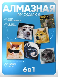 Алмазная мозаика набор мемные животные 14шт