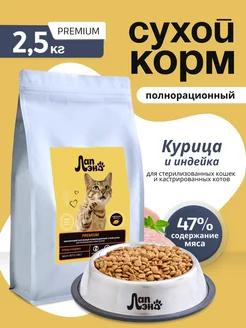 Корм для стерилизованных кошек сухой с курицей и индейкой