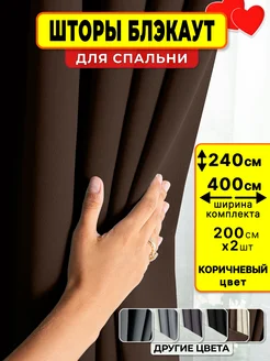 Шторы Блэкаут 400х240 (200х240 2 шт), коричневые, в спальню