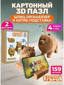 Картонный 3D пазл Шпиц-органайзер и Котик-подставка