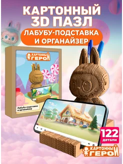 Картонный 3D пазл Лабубу подставка для телефона и органайзер