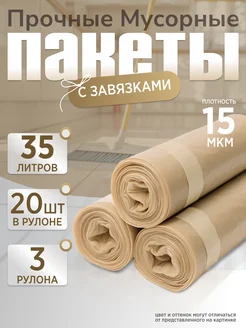 Пакеты для мусора прочные 35л плотные с завязками 3шт