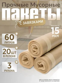 Пакеты для мусора прочные 60л плотные с завязками 3шт