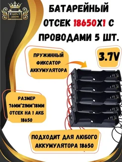 Батарейный отсек 18650 с проводами 5шт