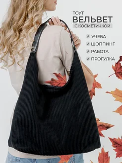 Сумка тоут шоппер большая вельветовая с косметичкой