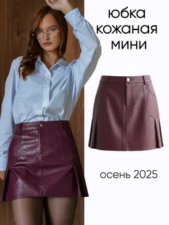 Юбка кожаная короткая мини в складку