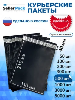 Курьерские черные сейф пакеты 110х210 мм, 500 шт