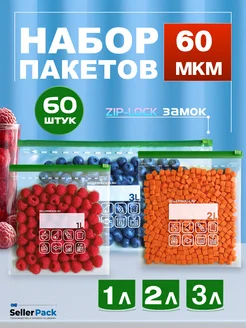 Зип пакеты для заморозки набор микс 1, 2, 3 л, 60 шт