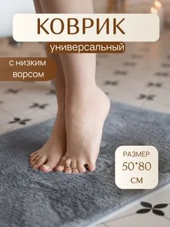Коврик для ванной и туалета противоскользящий пушистый серый