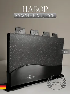 Доска разделочная пластиковая черная набор с подставкой 4 шт