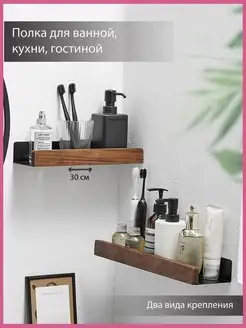 Настенная полка для ванной деревянная 30 см, 1 шт