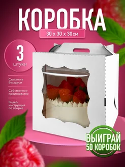 Коробка для торта 30 см с ручками и окном 3 шт