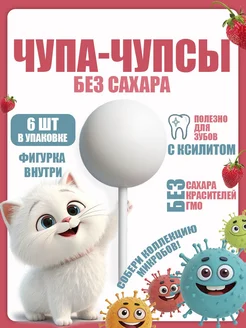 6 шт Леденцы чупа-чупсы без сахара с ксилитом клубника