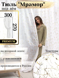 Тюль белый лен мрамор 300х270 в гостиную и спальню длинная