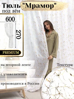 Тюль белый лен мрамор 600х270 в гостиную и спальню длинная