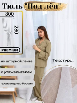 Тюль под лён 300х280 в гостиную и спальню длинная