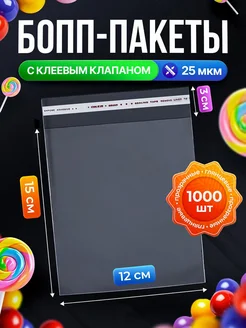 БОПП пакеты с клеевым клапаном 12х15 1000 шт