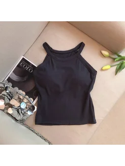 Топ в рубчик на бретелях с чашечками укороченный летний