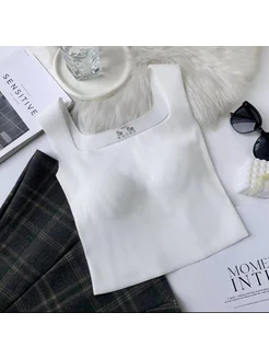 Топ в рубчик на бретелях с чашечками укороченный бесшовный