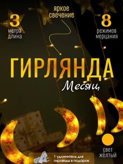 Гирлянда на окно занавес штора с фигурными насадками 3 метра