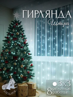 Светодиодная гирлянда штора на окно новогодняя 3х3 метра