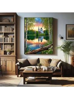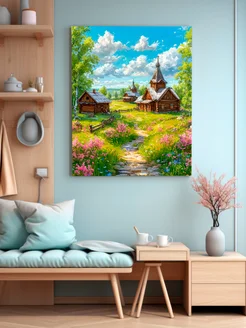 Картина на стену Деревенский храм 40х50 см