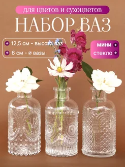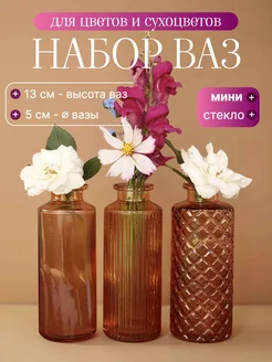 Ваза для цветов и сухоцветов стеклянная маленькая
