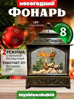 Фонарь новогодний музыкальный светильник со снегом