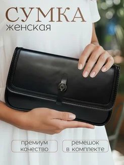 Сумка маленькая через плечо кожаная черная клатч