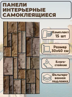 Панели самоклеящиеся для стен 30х60 см, 15 шт в упаковке