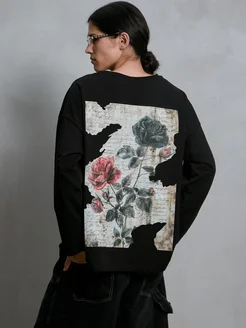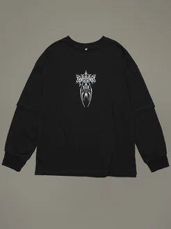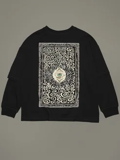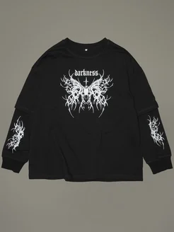 Оверсайз лонгслив с двойным рукавом принтом Y2k