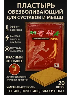 Пластырь обезболивающий для суставов и мышц красный женьшень