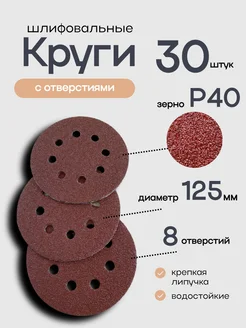 Круг шлифовальный на липучке с отверстиями 125мм, Р40. 30 шт