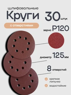 Круг шлифовальный с отверстиями 125 мм, Р120. 30 штук