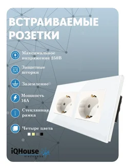 Встраиваемая двойная розетка с заземлением, 16А, белая