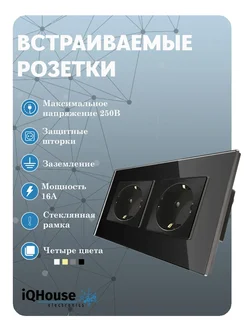 Встраиваемая двойная розетка с заземлением, 16А, черная