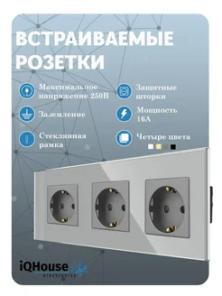 Встраиваемая тройная розетка с заземлением, 16А, серая