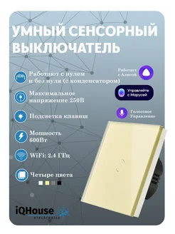 Умный сенсорный выключатель с WiFi, 1 кнопка, золотой