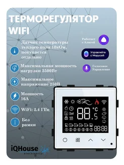 Терморегулятор для теплого пола с WIFI в рамку, белый