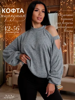 Кофта нарядная теплая больших размеров с открытым плечом