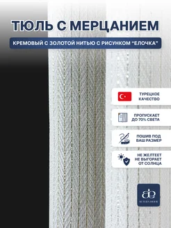 Тюль вуаль бежевая для комнаты с золотым узором, 260x400 см