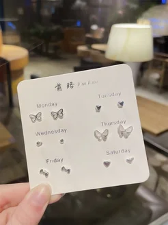 Серьги гвоздики бижутерия под серебро набор