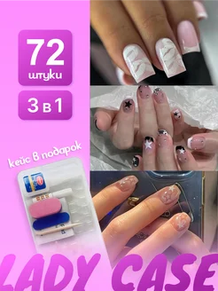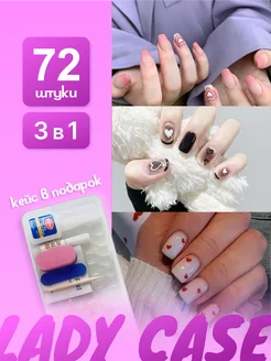 Накладные ногти 3 в 1 с дизайном и клеем короткие
