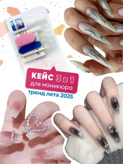 Накладные ногти 3 в 1 с дизайном и клеем длинные