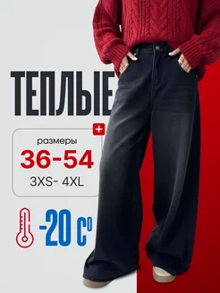 Джинсы теплые широкие багги клеш с высокой посадкой