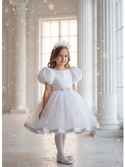 Платье нарядное новогоднее белое Снежинка