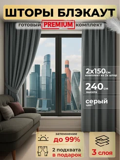 Шторы блэкаут 2 шт 150х240 см для гостиной и спальни серый