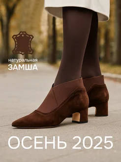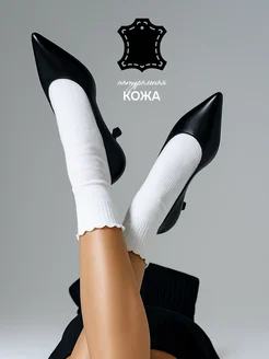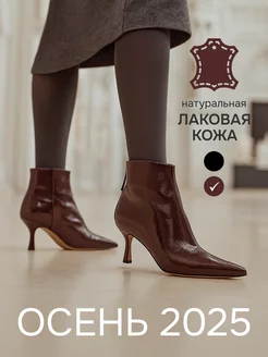Туфли лодочки осенние кожаные на шпильке с острым носом